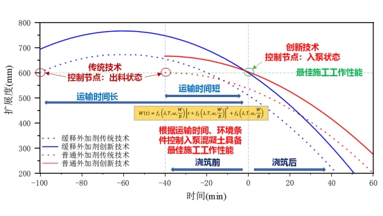 This working performance control method of newly mixed concrete formed by the project based on the objective regulation of the construction performance, It has provided key technical support for concrete performance design, regulation and guarantee of major projects such as Zangmu Yarlung Zangbo River Bridge, Pingnan Third Bridge, Longtan Tianhu Bridge, Jinshajiang Bridge of Sichuan-Tibet Railway, Jinsha River Bridge and other major projects. This technology has broken through the record of continuous pumping of 1013 square meters of concrete under the extreme environment of high altitude and large temperature difference, and helped fill concrete in the ultra-long and ultra-high pumping distance pipe of 575m super-span arch bridge.