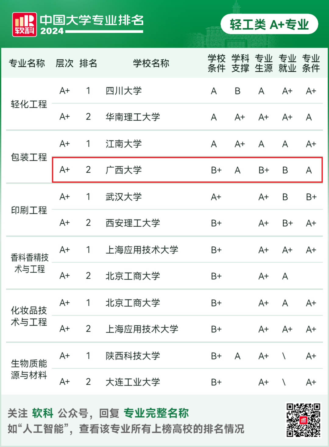 On June 13th, Shanghai Ranking released the "2024 Best Chinese Universities Ranking". Two majors were on the A+ list and other 18 majors were on the A list. The proportion of majors on the list (B and above) is 95.7%. Two A+ majors (e.g., Mineral Resource Engineering and Packaging Engineering) are ranked second in China. As for Level-A majors, Light Chemical Engineering and Thai rank fourth and fifth in China respectively. Compared to 2023, the number of A+ majors and A majors has increased by 1 respectively, and the rate of majors on the list has inreased by 2.3%.
