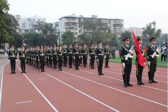 8 giờ sáng, Lễ chào cờ được bắt đầu. Đội danh dự bước vào sân với bước chân đều và kiên định, hộ tống lá cờ đỏ năm sao tươi đẹp đi về phía cột cờ. Bài Quốc ca vang lên, lá cờ đỏ năm sao từ từ bay lên, ánh mắt mọi người ở đây theo sát lá cờ, để bày tỏ tình yêu và lời chúc đối với tổ quốc cũng như ước mơ và triển vọng đối với năm mới.