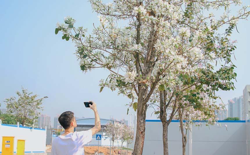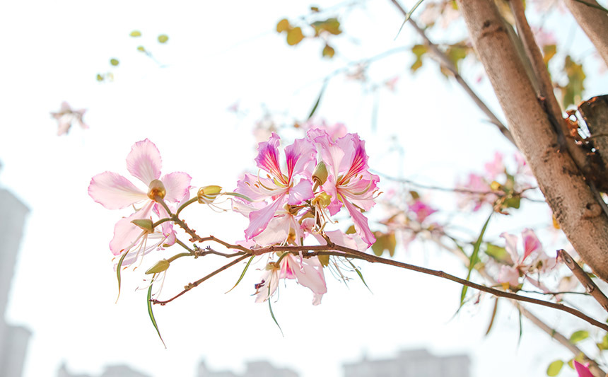春日里,粉洋紫荆在枝头绽放。