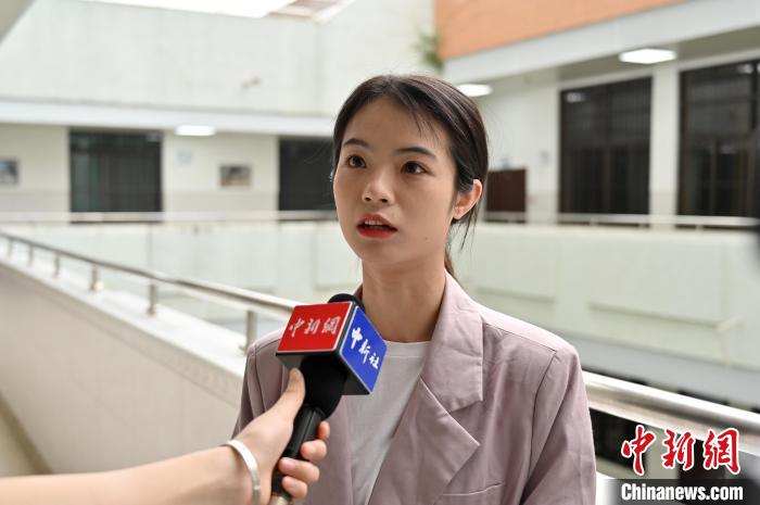 图为欧冠官方网站外国语学院2018级越南语专业学生覃媚接受中新网采访。 俞靖 摄