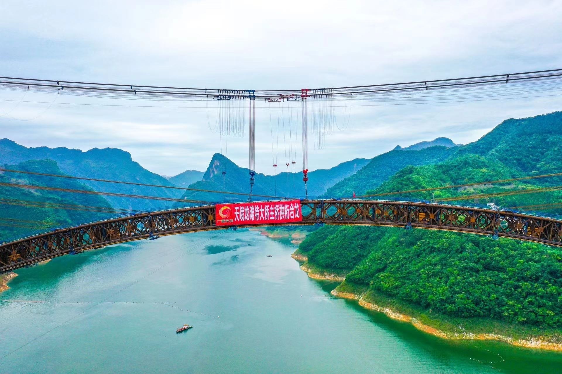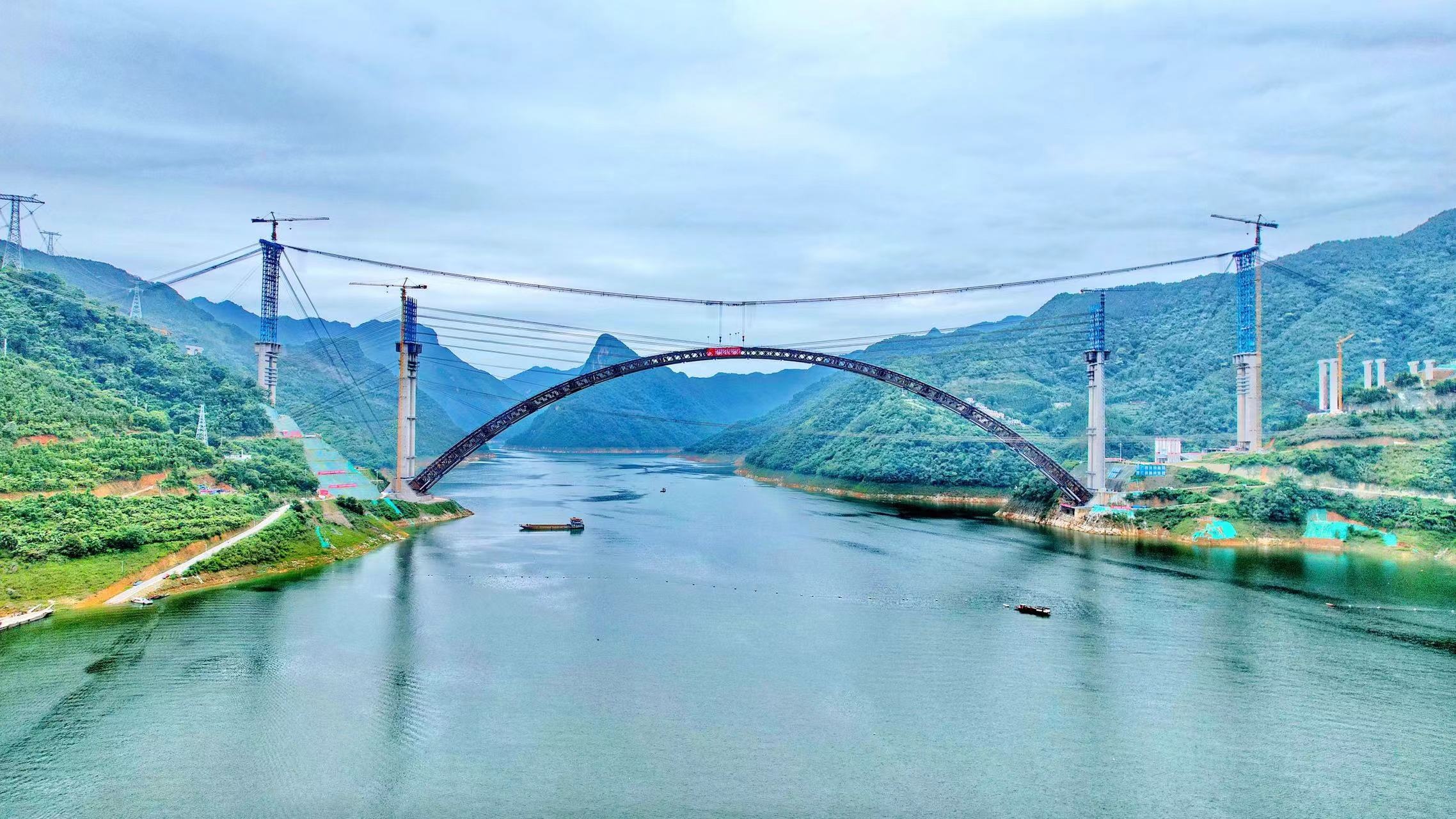 天峨龙滩特大桥主桥拱桁实现高精度合龙。