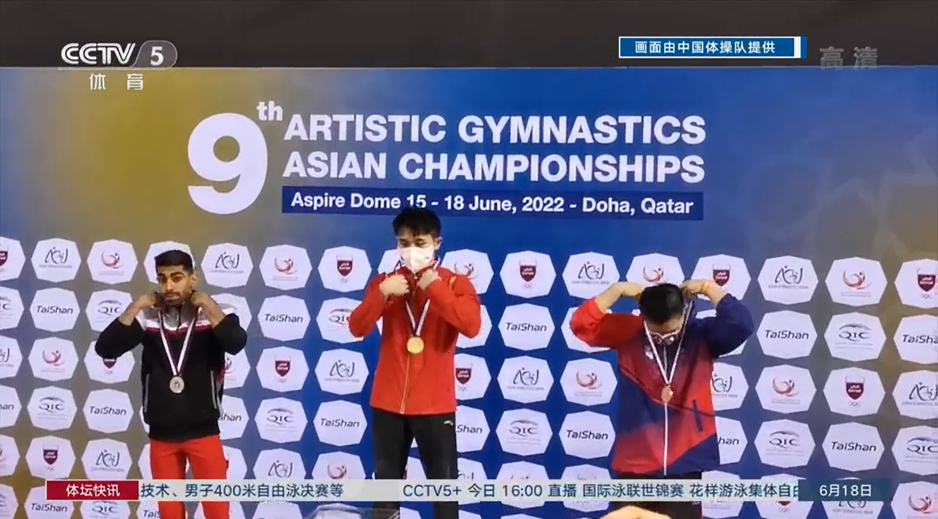 北京时间6月18日凌晨,第9届亚洲体操锦标赛结束第一个单项决赛日的争夺,中国体操队收获2金1银2铜共5枚奖牌。