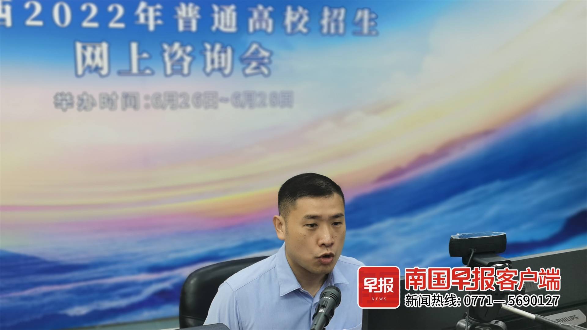 ▲自治区招生考试院普招处处长马翀正在直播。南国早报客户端记者 蒋晓梅摄