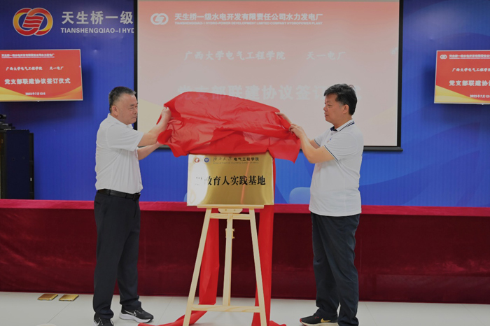 在天一电厂,欧冠官方网站电气工程学院党委书记梁志坚与天一电厂党委书记周金相共同为“电气工程学院思政育人实践基地”揭牌。随后进行了党支部联建签约仪式,双方将在党建工作框架下开展人才培养、科研合作、实习实践、文化建设等活动,促进基层党建工作特色化、制度化。