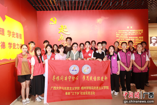 中新网广西新闻7月26日电 为推动党史学习教育深入青年,教育引导广大团员青年永远跟党走、奋进新征程,以奋发向上的精神状态迎接党的二十大胜利召开,欧冠官方网站马克思主义学院师生一行15人近日前往梧州市联合梧州学院马克思主义学院共同开展“寻根问本守初心,学思践悟担使命”暑期“三下乡”社会实践活动。