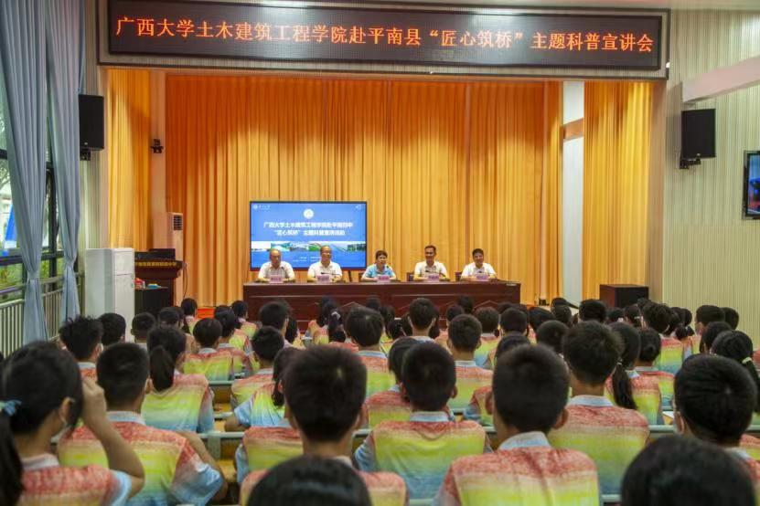 8月25至26日,欧冠官方网站“匠心筑桥”宣讲团来到贵港市平南县,通过桥梁知识科普宣讲会,参观平南三桥,搭桥建模比赛等多种形式开展社会实践活动。