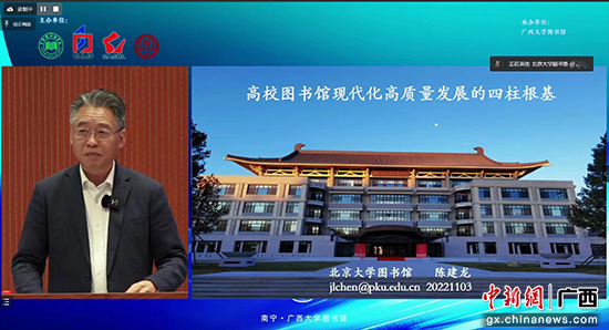 中新网广西新闻11月3日电 2022年高校图书馆发展论坛3日在线开幕,来自国内高校图书馆和相关行业的嘉宾、学者、馆长与馆员代表共约1500人相聚云端,共谋图书馆现代化建设与高质量发展。