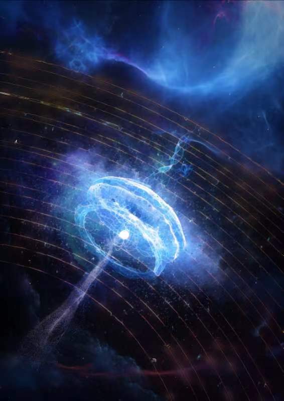 谢斐副教授介绍,脉冲星是由超新星的遗骸组成的一种高度磁化的旋转中子星,脉冲星风云则是快速旋转的脉冲星驱动的星风冲击外部物质产生的高能天体。船帆座脉冲星风云距离地球约900光年,是距离地球最近的脉冲星风云之一。船帆座脉冲星风云在中心快速旋转(每秒自转11.2次)的船帆座脉冲星的驱动下,能够发射出射电、X射线、高能伽马射线等不同波段的光辐射,也是目前已知最亮的脉冲星之一。通过X射线成像偏振望远镜,发现船帆座脉冲星风云存在极强的偏振,是人类目前在高能波段探测到的偏振度最高的一个目标源。它改变了科学家对粒子加速机制的认识。