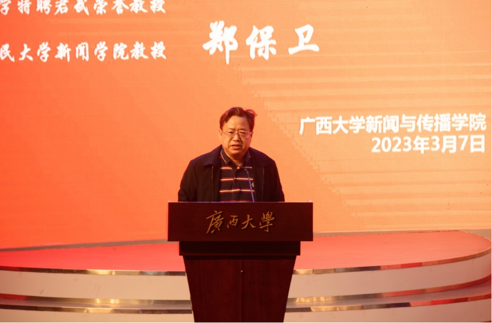 (郑保卫教授作报告)