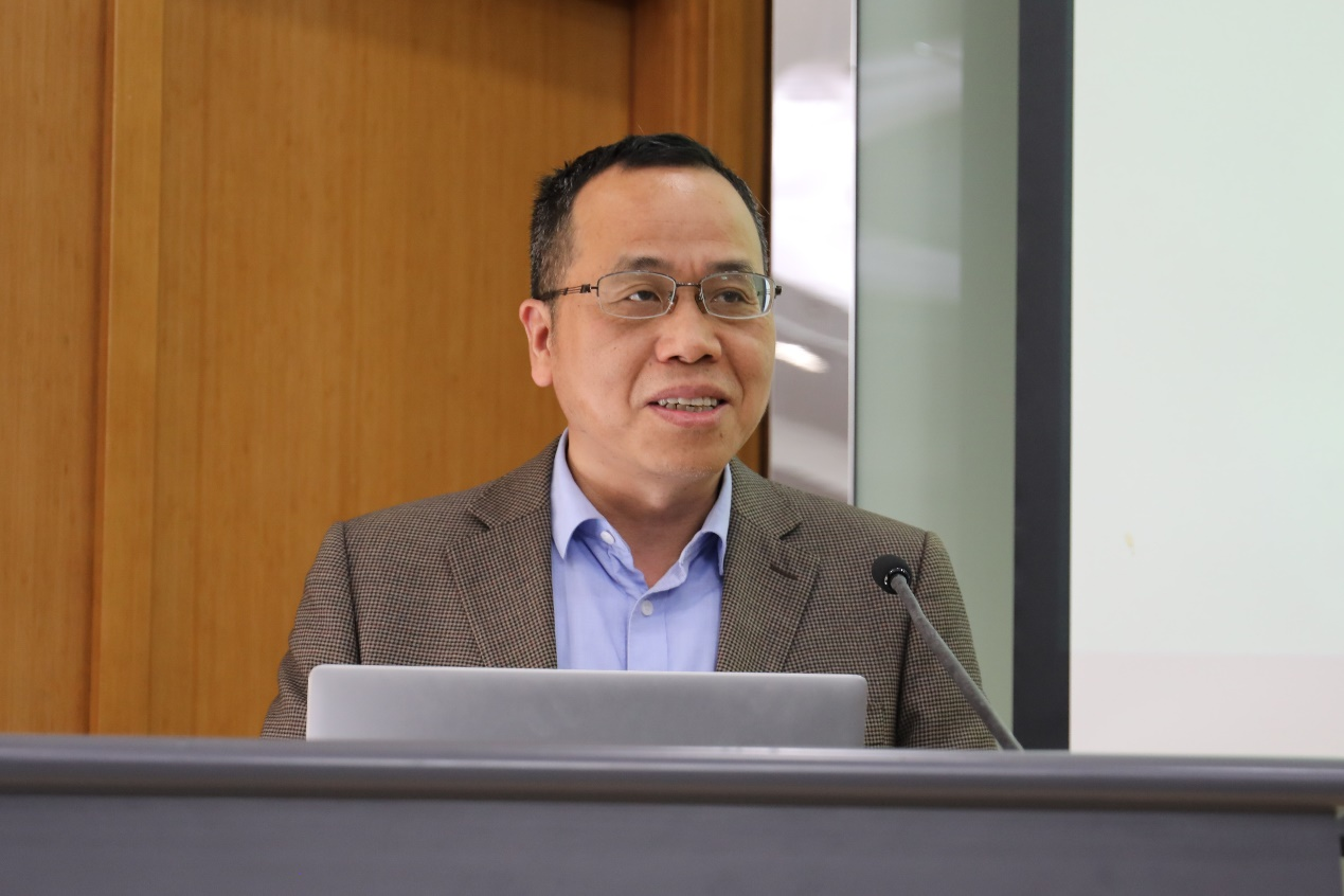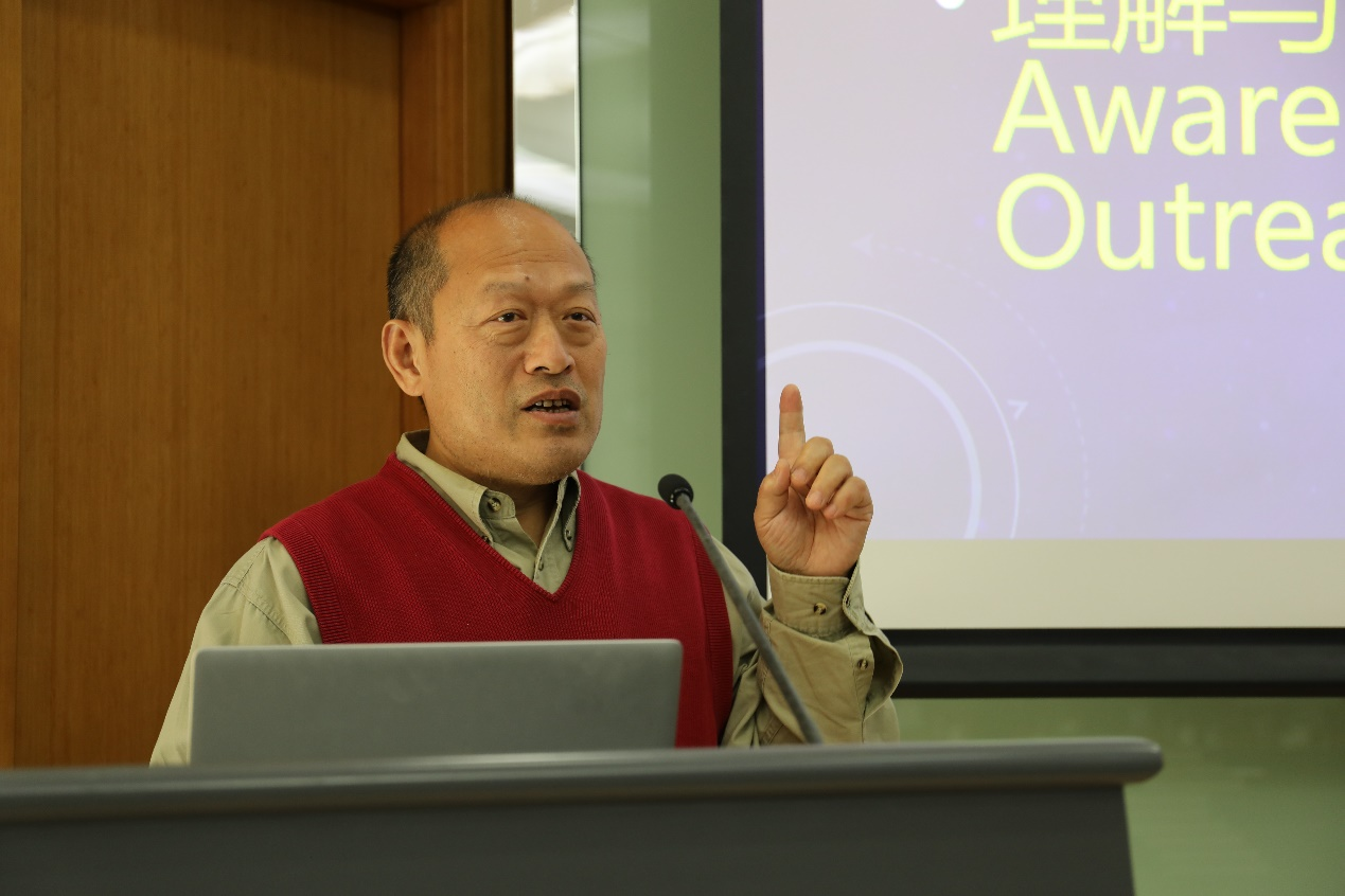 (图为欧冠官方网站气候与健康传播研究中心主任吴海荣教授致辞)