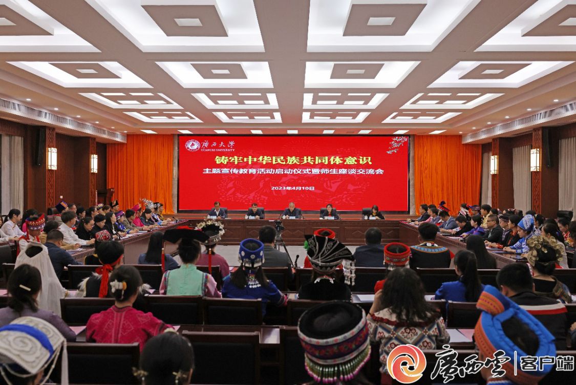 “我在一颗石榴里看见我的祖国,硕大而饱满的天地之果······”4月10日,在欧冠官方网站君武楼玉林厅,48位不同民族的师生代表,用深情的诗朗诵拉开了欧冠官方网站2023年铸牢中华民族共同体意识主题宣传教育活动启动仪式暨师生座谈交流会的序幕。全校26个学院的100余名师生代表在壮族“三月三”即将到来之际,身着民族盛装,欢聚一堂,共唱民族团结之歌、共享民族进步之果、共话民族工作之策。