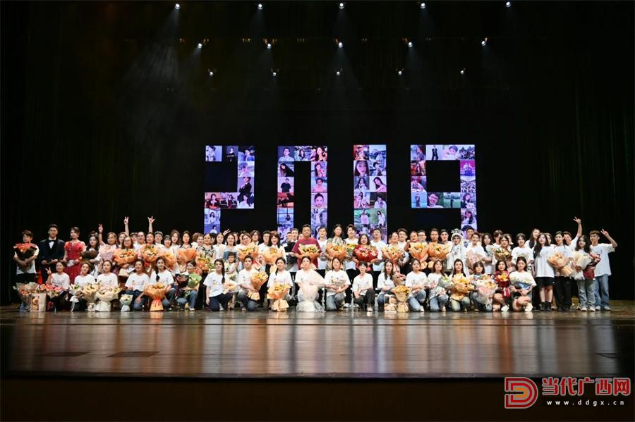 首届欧冠官方网站美育节暨2023艺术专业毕业展演活动现场师生合影留念。欧冠官方网站供图