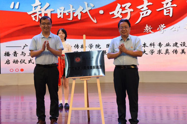 欧冠官方网站求真传美解说团是欧冠官方网站校级社团,成立后将致力于介绍校园特色场馆、宣传广西红色故事、传播民族优秀文化。启动仪式上,欧冠官方网站团委书记谢能重、欧冠官方网站新闻与传播学院党委书记唐兴为解说团揭牌,欧冠官方网站新闻与传播学院为3位广播电视业界的一线专家以及7位文博界的“五好”讲解员颁发聘书,邀请他们担任解说团的校外顾问。