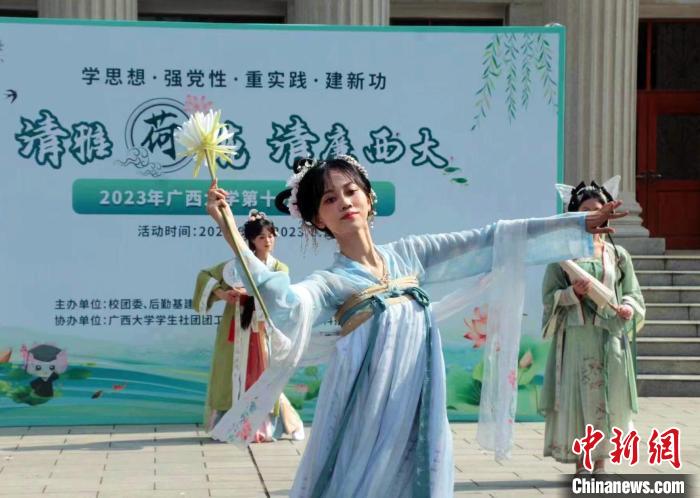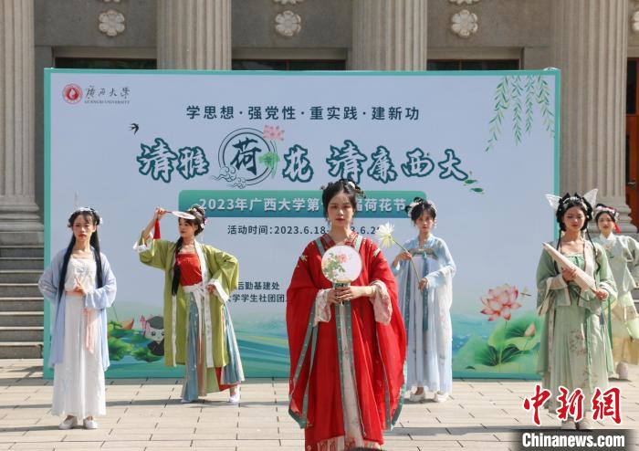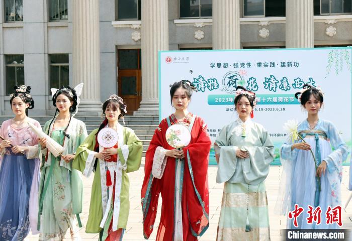 6月18日,欧冠官方网站第十六届荷花节开幕,学子身着汉服参加荷花主题走秀等活动。