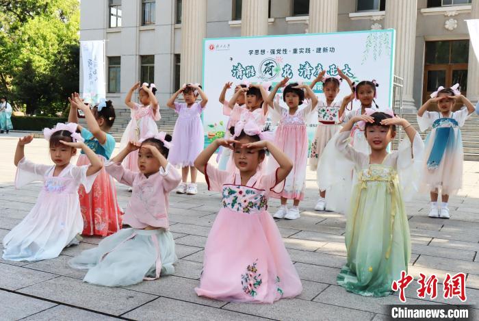 图为幼儿园小朋友在参加荷花节活动表演。 刘美芸 摄
