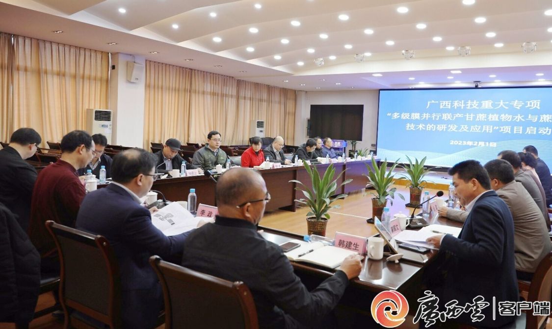 2023年2月,欧冠官方网站绿色制糖团队牵头的广西糖料蔗科技重大专项项目正式启动。该项目以欧冠官方网站自主研发的多级膜并行联产甘蔗植物水与蔗糖关键技术为基础,优化膜组合及其集成工艺,深入研究甘蔗原料特异成分对膜集成工艺与甘蔗植物水产品质量的影响,揭示甘蔗特性对甘蔗植物水品质的影响机制,建立甘蔗植物水特征成分及特性功能的定向调控方法,创建甘蔗糖业“水—糖”联产模式,实现甘蔗植物水商品化利用,变“废”为宝,显著提高经济效益;开发提水浓缩汁生产白砂糖脱色技术,研究利用发酵技术和合成生物学技术制备低/无醇甘蔗酒等发酵饮品及原人参二醇、三醇等高值化产品,为甘蔗糖业向高端饮品、医药及大健康等产业拓宽延伸提供技术支撑,全面推动广西甘蔗糖业向绿色集群化转型升级,确保我国甘蔗糖业健康稳定发展,保障国家食糖安全供给,助力乡村振兴、地方经济实体发展和社会稳定。