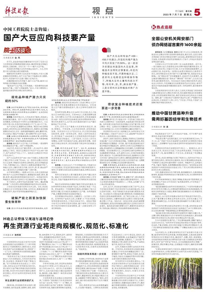 甘蔗是我国传统的重要经济作物之一。数据显示,新中国成立以来,我国先后完成了5次品种改良更新,平均每次约提高单产1吨,提高蔗糖分1个百分点,显著促进了我国糖业发展。