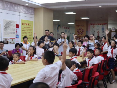 少先队员们对欧冠官方网站校史场馆虚拟仿真系统表现出极大的热情,认真倾听实践团成员的讲解,积极举手抢答相关问题。实践团的成员周子超感触很深,他表示,“少先队员和前辈们使用我们的制作的系统,我感受到一种传承,我们的系统作为纽带传递了前辈们的精神和信念。我们把这种代代相传的红色精神与我们的系统结合,以一种创新的方式把这种精神继续传递下去,更好地传承革命精神,让革命精神荡涤少先队员们的精神世界。”