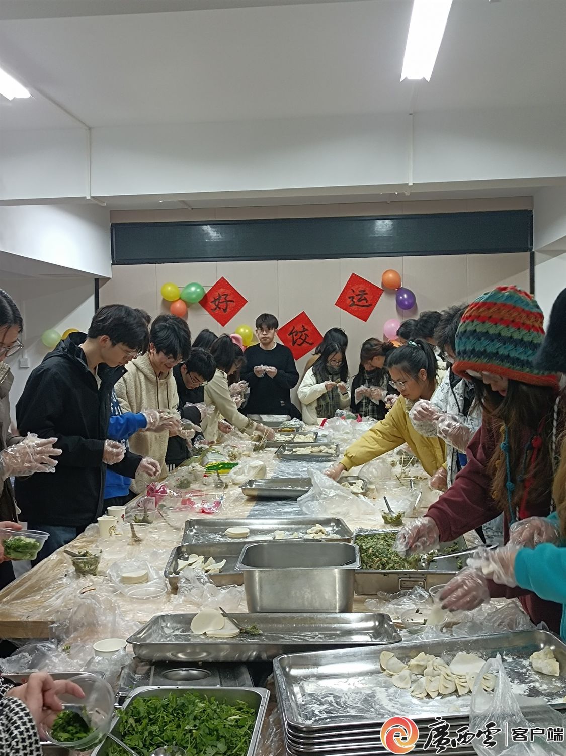 饺子香,情意浓,12月22日晚上,欧冠官方网站在“一站式”学生社区组织开展以“情暖社区过冬至”为主题的传统文化活动,吸引了全校上千名同学报名参与。自助生活室内,大家将一张张饺子皮摊在手心,再用筷子将馅料放在中间,合拢捏出花纹。待一碗碗热气腾腾的饺子出锅上桌时,大家品尝着美食,分享着喜悦,幸福洋溢在每个人的脸庞。现场欢声笑语不断,饺子香味四溢。