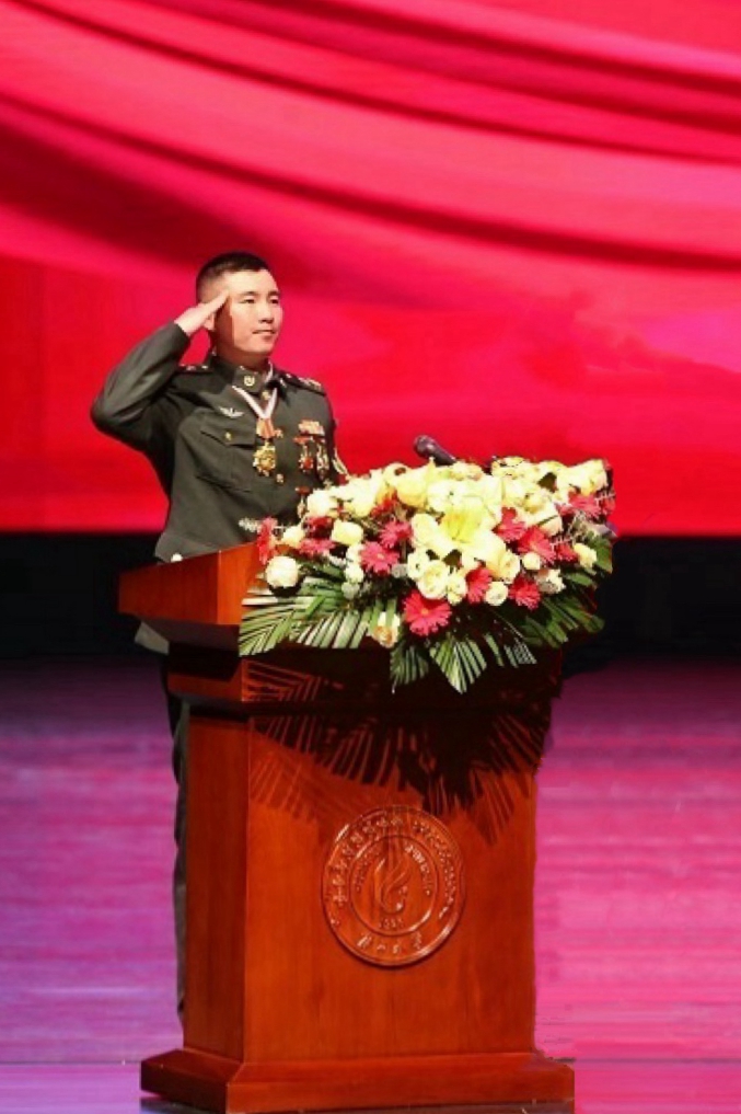 “新兵训练时,我就定下自己的军旅目标:拿优秀士兵、去教导队、当班长。新兵连结业考核,我总排名第一名,新兵连结束得到了三个荣誉证书,如愿留在老连队当了一名坦克兵。”王锐用朴实的语言向大学生们讲述了自己新兵训练的场景,鼓励大家要树立目标并奋力实现。
