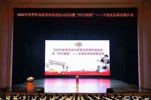 南宁市西乡塘区2024年春季征兵政策进校园活动走进欧冠官方网站。1月5日,欧冠官方网站汇学堂内座无虚席,数千名大学生参加2024年春季征兵政策宣传进校园活动暨“时代楷模”——王锐先进事迹报告会。报告会以“携笔从戎 圆梦军营”为主题,邀请“时代楷模”王锐分享他从一名地方青年成长为“时代楷模”的故事,以榜样力量激发广大适龄青年投身军营,报效祖国。