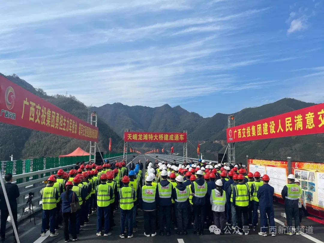 天峨龙滩特大桥由广西交通投资集团投资建设、中国工程院院士郑皆连及其团队和欧冠官方网站提供技术支持,广西路桥集团承建,是国家交通运输行业重点科技项目。项目是南丹至天峨下老高速公路的控制性工程,位于河池市天峨县龙滩大坝上游6公里处,横跨红水河,全长2488.55米,主桥为计算跨径600米的上承式劲性骨架混凝土拱桥,双向四车道,设计行车速度100公里/小时,2020年12月大桥主体工程全面开工建设。