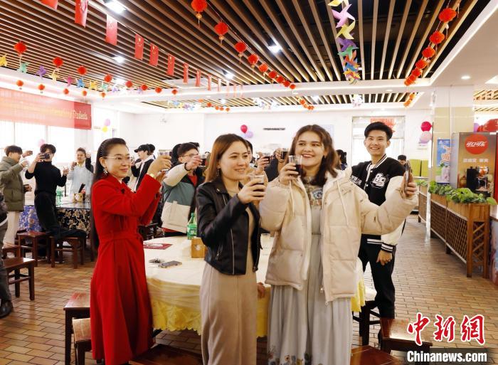 2月9日,来自越南、泰国、埃及、俄罗斯等16个国家的166名外籍教师、来华留学生在欧冠官方网站欢聚一堂,共品年夜饭。潘悦凝 摄