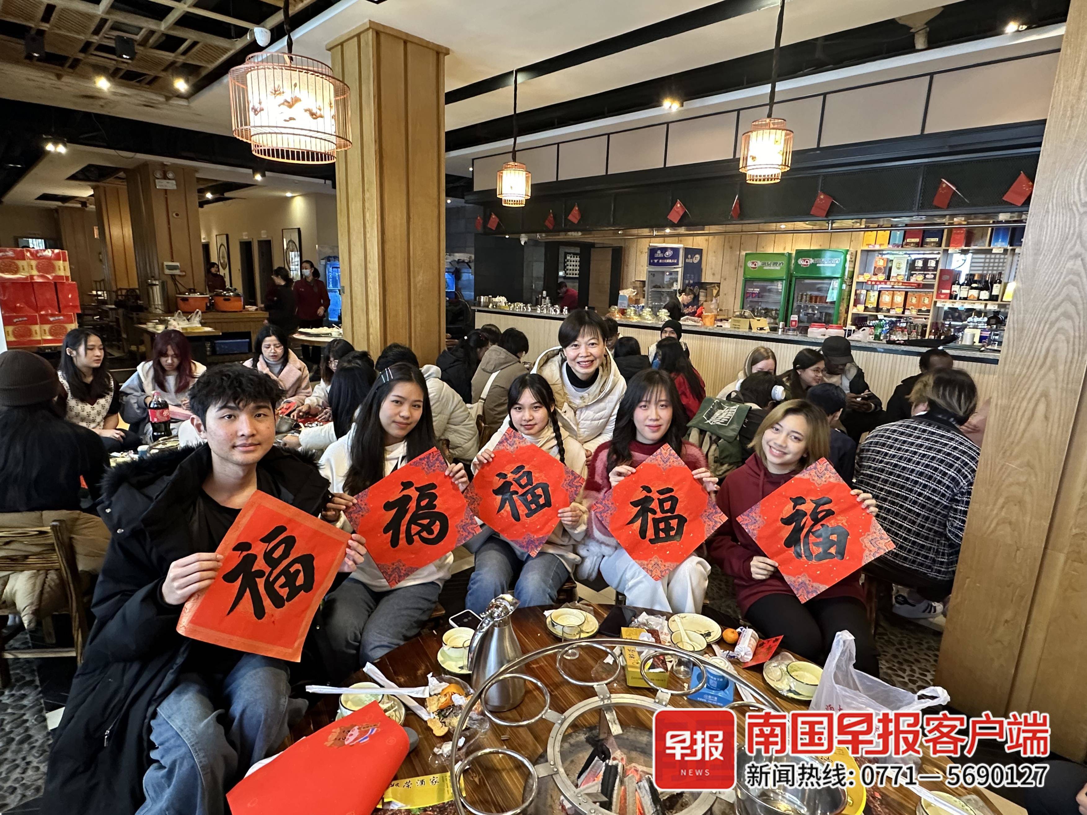 2024年春节,广西高校部分学子因学习、科研等原因,选择留在学校过年。近日,多所高校纷纷举办花式迎新春活动,写对联、送福袋、吃年夜饭……满满仪式感让留校学子过年也温暖。