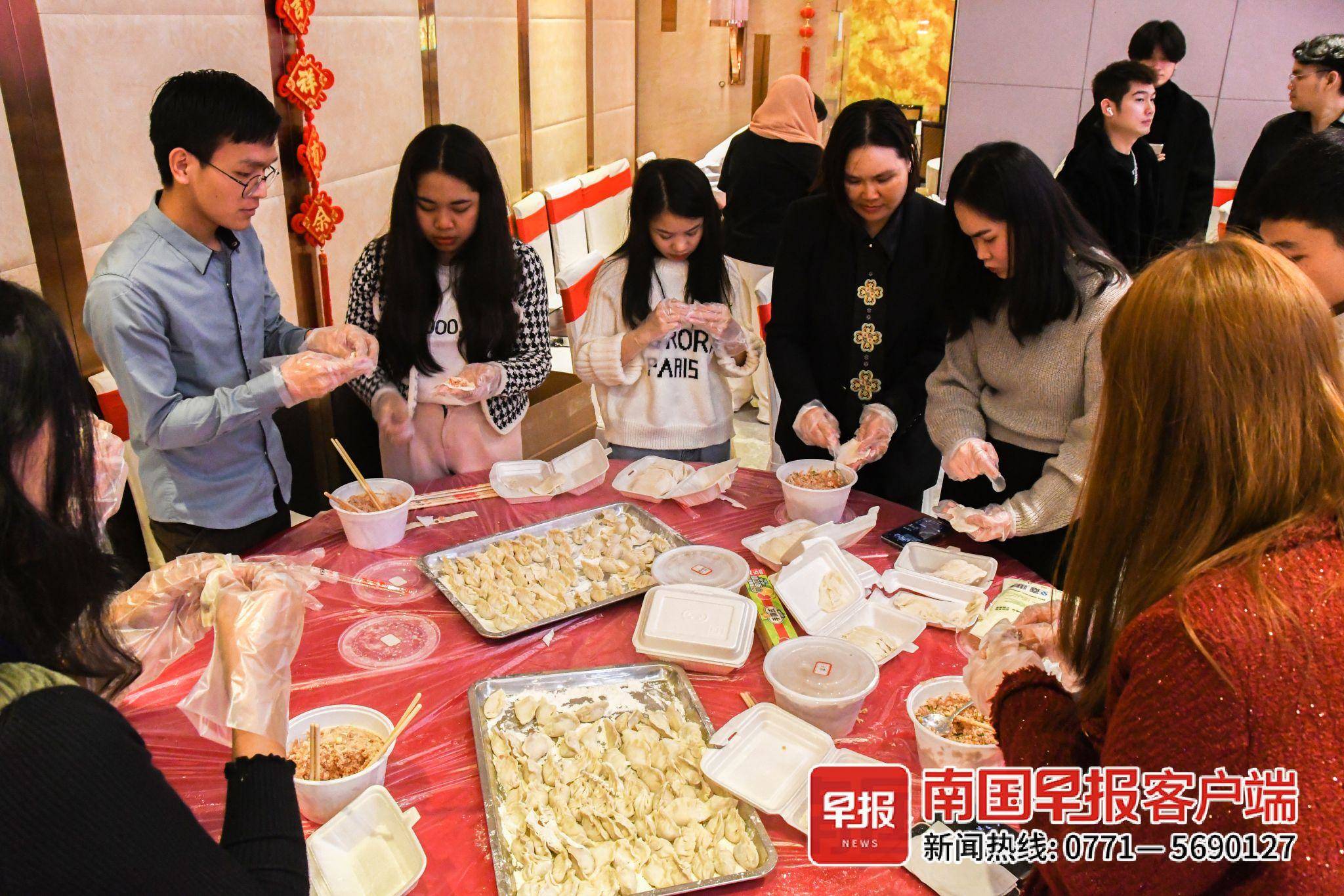 春节前,广西师范大学、广西民族大学也为留校的外国留学生和外籍教师举办了迎新春活动。除了年夜饭,活动现场还安排写“福”字、写对联、包饺子、猜字谜、剪窗花等环节,让外籍教师和留学生感受中国传统文化习俗的魅力。