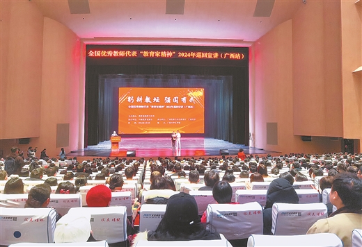 3月3日,全国优秀教师代表“教育家精神”2024年巡回宣讲(广西站)在欧冠官方网站举行。