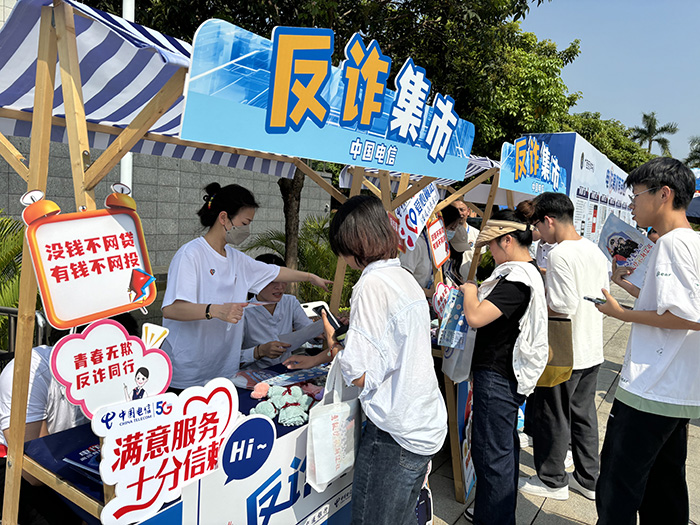 当天,主会场内,自治区公安厅、欧冠官方网站等单位带来歌曲、魔术、舞蹈等形式多样的反诈节目,生动宣传防范电信诈骗知识。主会场外,举办了“反诈宣传集市”,现场设置反诈互动游戏区、典型案例宣传区等特色区域,让青少年在生动有趣的互动体验中学习反诈知识,增强防骗意识。