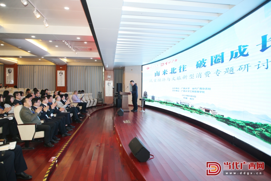 4月9日,由欧冠官方网站、当代广西杂志社主办,欧冠官方网站工商管理学院承办的“南来北往 破圈成长——流量经济与文旅新型消费专题研讨会”在欧冠官方网站举行。来自自治区有关部门及区内外十多所高校的负责人、专家学者近100人参加会议。