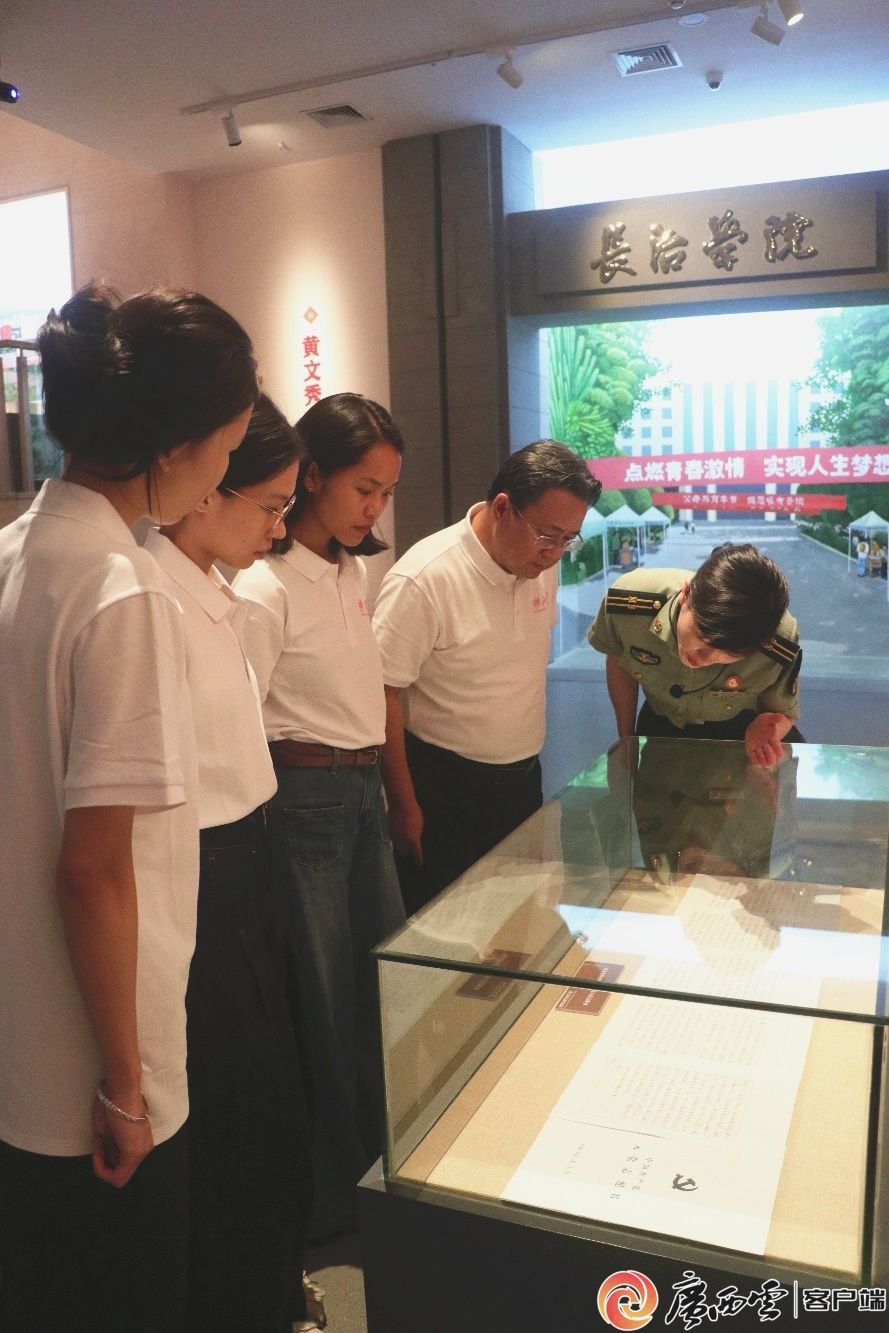 师生们驻足在黄文秀入党志愿书前。杨淦 摄