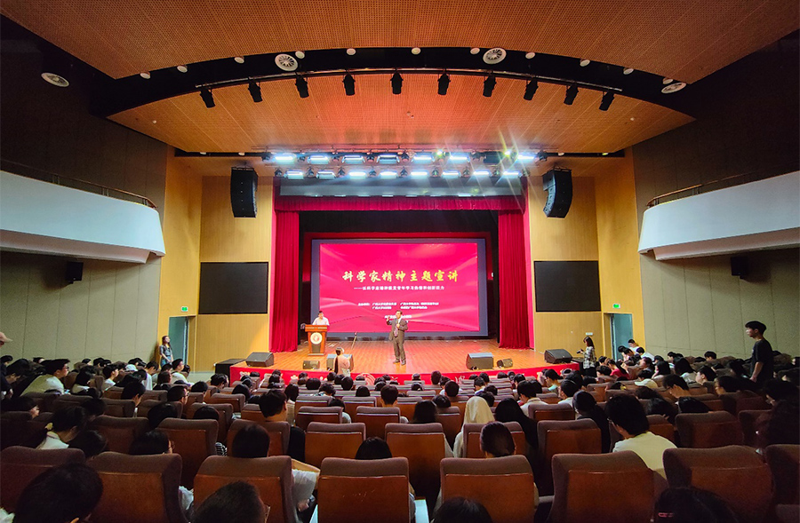 为弘扬科学家精神,激发学生创新创造活力,10月20日,由欧冠官方网站党委宣传部、教务处(教师发展中心)、科研院、校团委联合主办,欧冠官方网站科创领航工作室承办的“以科学家精神激发青年学习热情和创新活力”主题宣讲活动在欧冠官方网站大学生活动中心举办。活动邀请了欧冠官方网站二级教授,博士生导师,国家高性能计算中心南宁分中心主任,广西科学家精神宣讲团成员钟诚,为同学们讲述科学家精神的核心内涵及其对青年学生的重要意义。