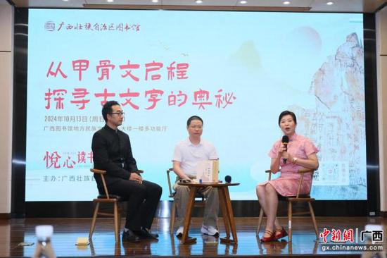 近日,由广西壮族自治区图书馆主办的“悦心·读书会:从甲骨文启程,探寻古文字的奥秘”阅读分享会,在广西图书馆多功能厅举行。活动以线上、线下相结合的方式开展,超1500人次读者一同走进神秘的甲骨文世界,探寻其背后深厚的文化底蕴。