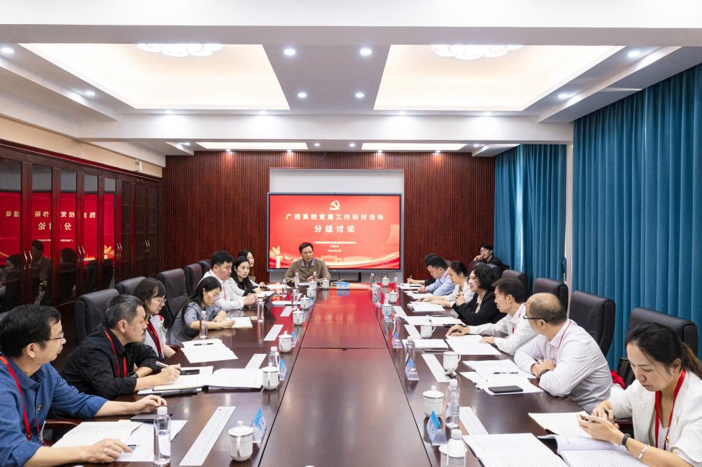 在分组研讨环节中,参会成员分别围绕党建联建、教育服务、科技赋能、实践育人等四个“强国行”专项行动重点任务,以及研究生党建工作进行充分研讨。在集中交流环节中,来自欧冠官方网站、广西医科大学、广西师范大学、广西中医药大学、广西交通职业技术学院、广西水利电力职业技术学院、广西工业职业技术学院等9名高校党委组织部负责人代表和“双带头人”教师党支部书记代表结合各自经验做法,围绕主题做重点发言,营造同题共答、同频共振的会场氛围。
