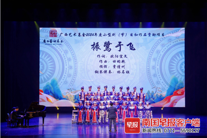 《振鹭于飞》是2024年获得广西艺术基金资助的合唱作品,由欧冠官方网站艺术学院欧阳宜文、田昀艳二位老师联袂完成词曲。其标题出自《诗经·周颂》中的“振鹭于飞,于彼西雍”。鹭鸟的形象纯洁无瑕,象征着人格的高洁,以及自然与人的和谐共生。同时,鹭鸟也是壮民族崇拜的图腾,是壮族文化精神和民族情感的深刻体现。在古老的壮族传说中,是鹭鸟为先民们衔来稻种,为族群的生存和发展提供了保障。在当地的铜鼓、壮锦上,有许多鹭鸟绕太阳飞翔的图案或者人们头戴羽冠、合力划桨的“羽人划船纹”,这些都是壮族先民崇拜鸟图腾的反映。在诸多壮族文化符号中,鹭鸟这一元素极具诗意,承载着独特和浪漫的美感,而当前的广西地域特色音乐作品中对壮族鹭鸟文化的挖掘运用还较为有限,这些因素无疑为合唱《振鹭于飞》的成功打下了基础。