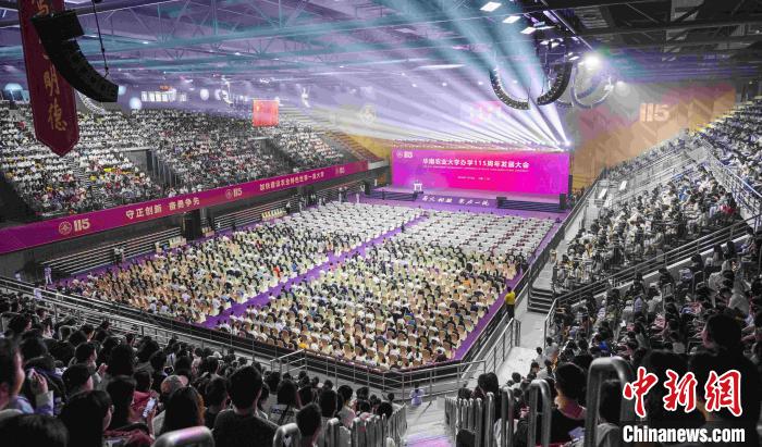 11月10日,华南农业大学举办办学115周年发展大会,来自海内外嘉宾、社会各界代表与华农师生校友等6000多人欢聚一堂。华南农业大学供图