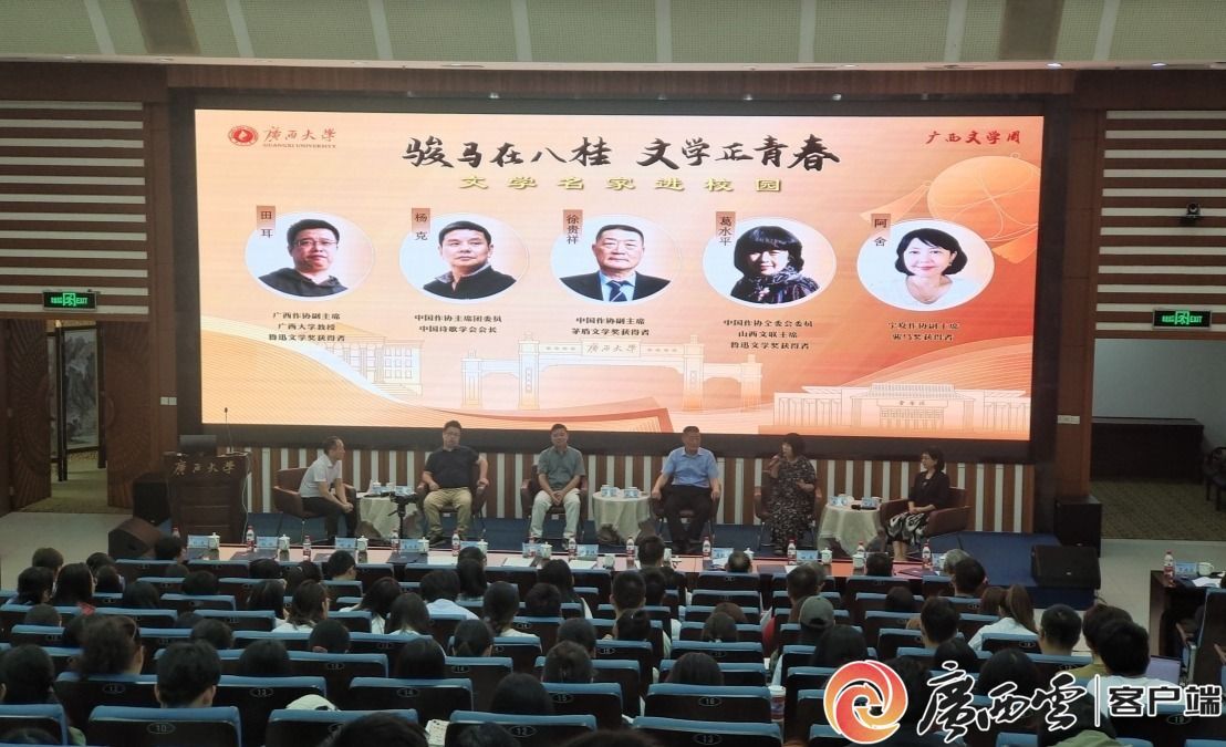 11月14日上午,“2024中国文学盛典·骏马奖之夜”系列活动之一,“广西文学周”著名作家进校园活动走进欧冠官方网站。本次交流会以“骏马在八桂 文学正青春”为主题,徐贵祥、杨克、葛水平、田耳、阿舍等多位文坛大咖走进校园,与大学生们面对面畅谈文学创作体验和感悟,并就网络文学的崛起、跨文体写作、跨界写作、未来文学的发展趋势等话题进行了探讨。