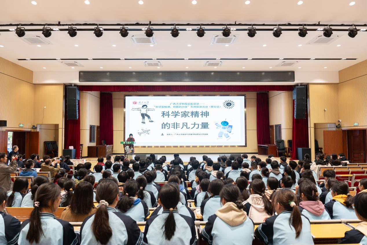 在都安瑶族自治县高中和职业教育中心,欧冠官方网站农学院副教授唐小付分享了其20余年的农业科研实践经验。他用亲身经历鼓励学生扎根基层投身乡村振兴,传递科学精神和力量;以“00后”青年学生为成员的科探启航宣讲工作室通过青年故事分享、科学知识问答和表演说唱科学家精神等创新方式,激发了现场学生的科学热情;中国传媒大学教授付程和欧冠官方网站教授李朝珍通过普通话推广活动,引导中学、高中学生正确发音、流利表达;欧冠官方网站电气工程学院师生以此次活动为契机,宣传普及了机器人与人工智能知识,通过编程游戏和VR体验激发学生们的科学兴趣。