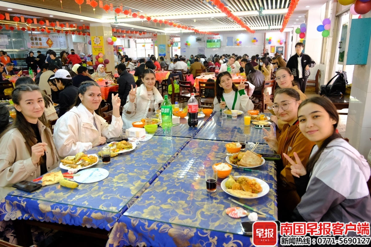 中午时分,外籍师生们围坐在桌前,提前共享丰盛的年夜饭。从狮子头、新疆大盘鸡等中式美味,到泰汁柠檬鱼露虾等异域佳肴,每一道菜都传递出浓浓的节日氛围。