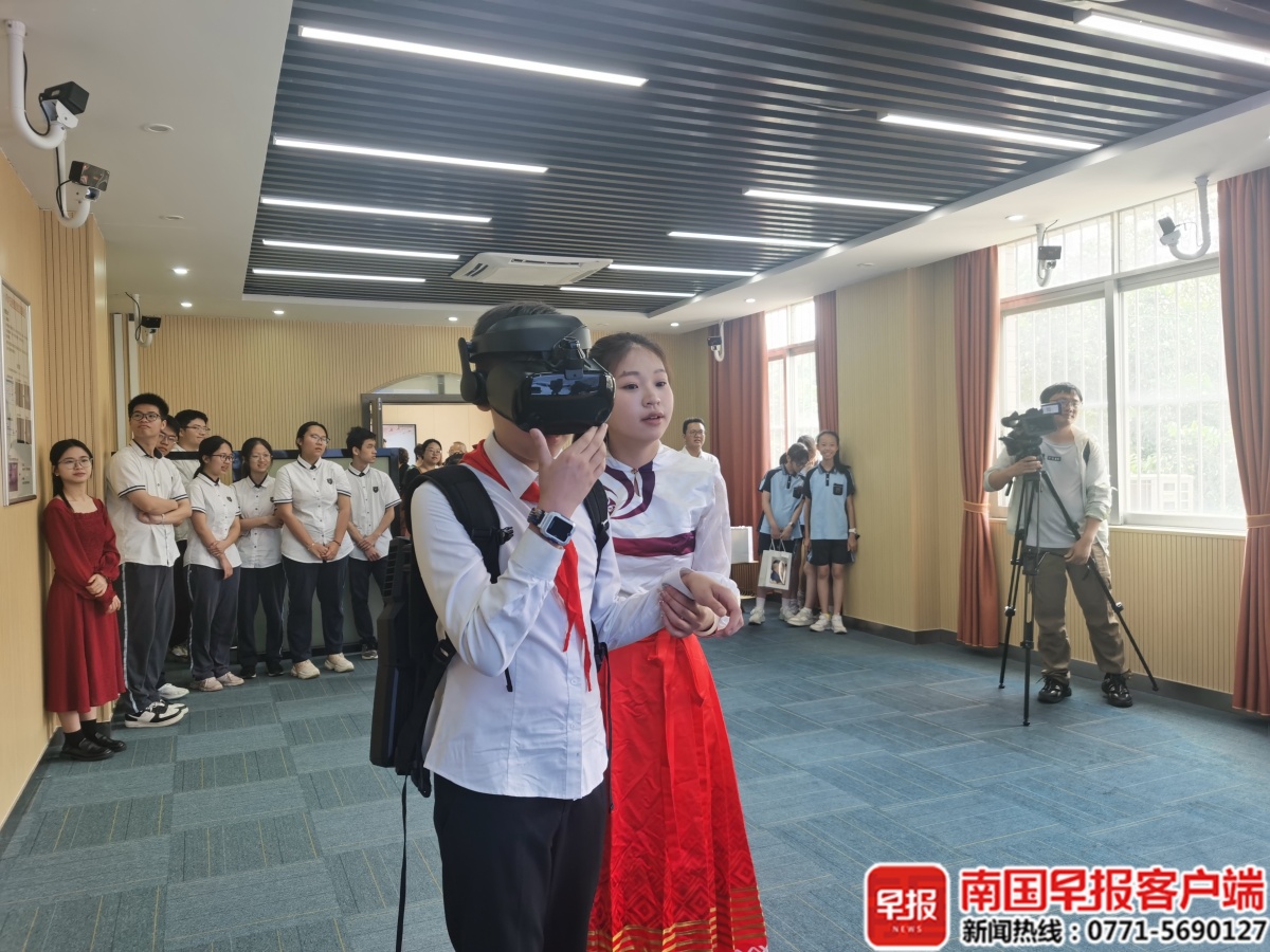 此外,该学院还展示了“大思政课”数智化升级成果。参与活动的中小学生参观了思想政治教育认知科学与应用实验室,通过VR体验了红军爬雪山、过草地场景。