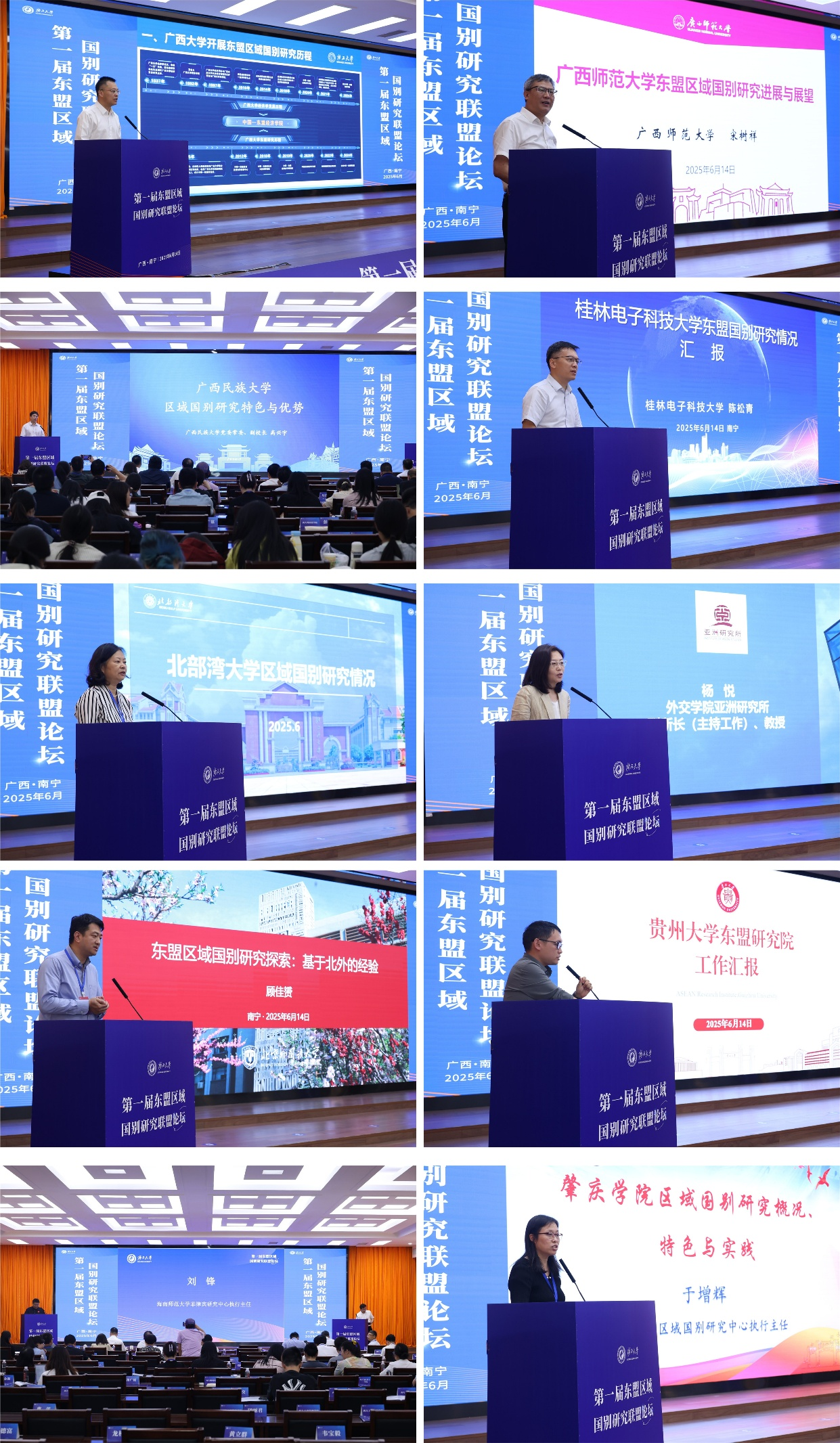 论坛中,欧冠官方网站、广西师范大学、广西民族大学、桂林电子科技大学和北部湾大学等高校领导,外交学院、北京外国语大学、贵州大学、海南师范大学、肇庆学院等东盟区域国别研究机构负责人分别介绍本单位东盟区域国别研究的经验做法,为与会者提供丰富的实践参考和合作契机;同时,主办方还举行了三场分论坛,主题包括东盟区域国别研究经验特色、东盟十国国别研究专题探索、中国—东盟合作与发展研究。