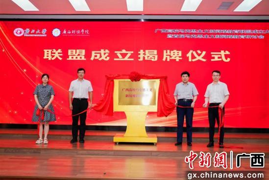 本次大会上,由欧冠官方网站新闻与传播学院牵头,与广西财经学院新闻与文化传播学院、广西师范大学文学院/新闻与传播学院、广西民族大学传媒学院、南宁师范大学新闻与传播学院、北部湾大学人文学院、广西艺术学院影视与传媒学院等19所区内高校组建的广西高校马克思主义新闻观教育联盟,举行了授牌仪式。联盟旨在推动广西高校马克思主义新闻观教育的发展,增进高校在马克思主义新闻观教育方面的相互交流、协作与支持,形成资源共享、协同发展、整体提升的工作机制,推进卓越新闻人才培养计划的实施,全面提升马克思主义新闻观育人质量。
