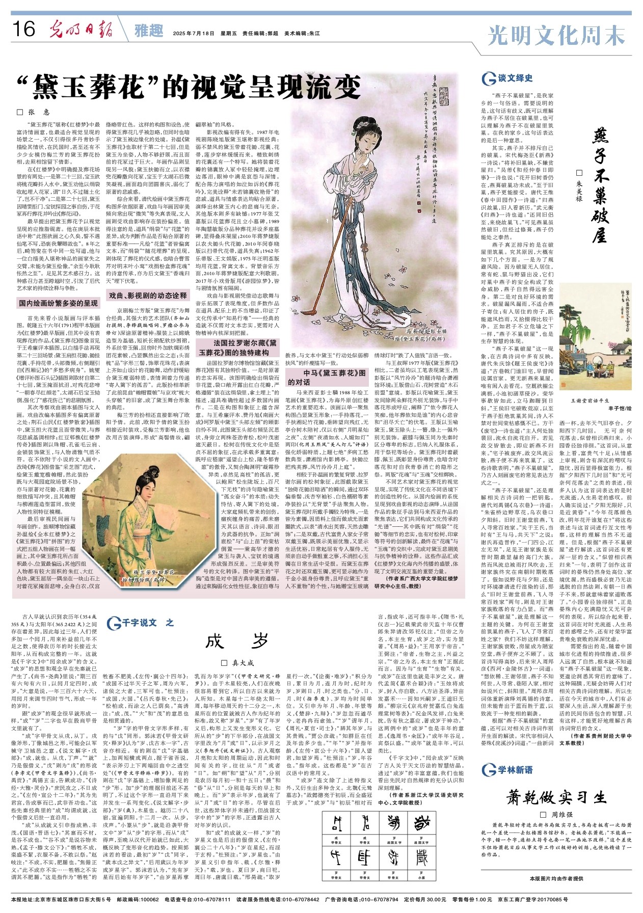 不同艺术家对黛玉葬花的视觉呈现,实现了传统文化在不同语境下的创造性转化。从国内绘画的系统呈现到戏曲影视的动态演绎,从法国作品的象征手法到马来西亚作品的聚焦表达,它们共同构成文化传承的“光谱”——其中既有对“绢袋”“花锄”等细节的忠实,也有对松树、印章等符号的创新解读,最终在“花魂”与“玉魂”的交织中,完成对黛玉悲剧美与抗争精神的诠释。这些作品汇成《红楼梦》文化海内外传播的盛景,体现了文明交流互鉴的重要力量。
