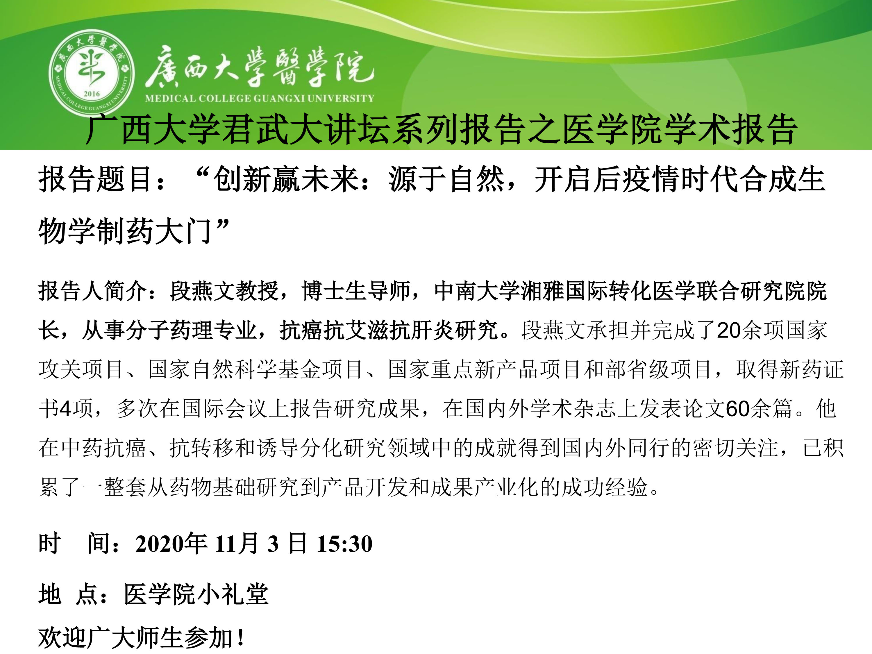 欧冠官方网站君武大讲坛系列报告之医学院学术报告:“创新赢未来:源于自然,开启后疫情时代合成生物学制药大门”