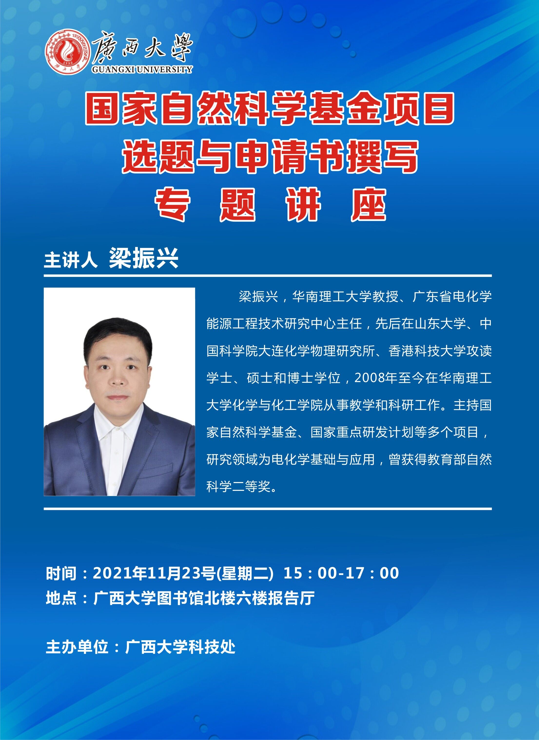 主讲人 梁振兴 地址 欧冠官方网站图书馆北楼六楼报告厅