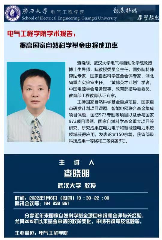 电气工程学院学术报告:提高国家自然科学基金申报成功率