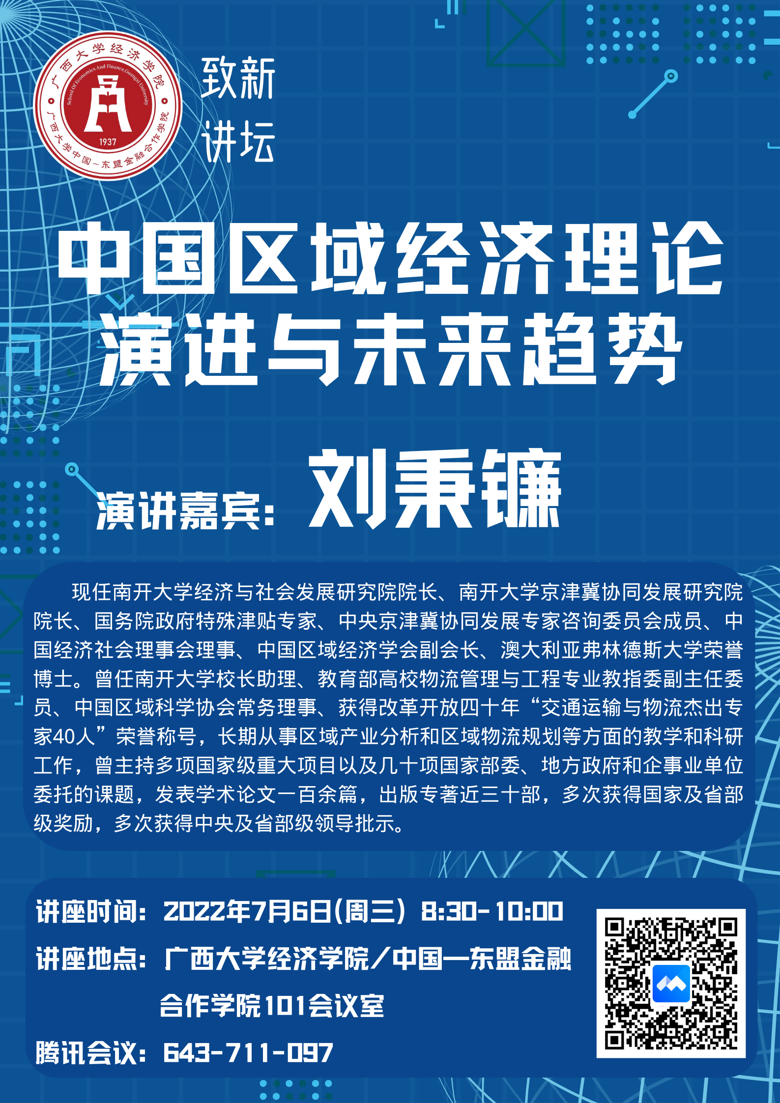经济学院/中国—东盟金融合作学院致新大讲坛:中国区域经济理论演进与未来趋势